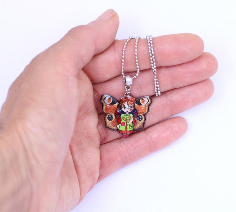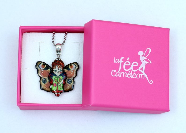 Découvrez ce joli collier poétique "Petite Fée Papillon artiste", une création artisanale en résine qui apporte une touche de magie à votre tenue.