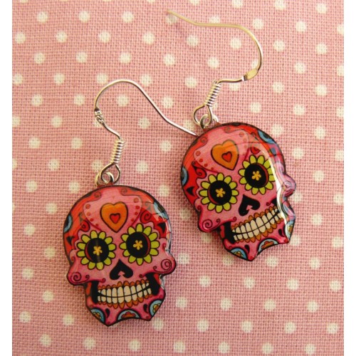 Apportez une touche colorée, audacieuse et pleine de caractère à votre style avec ces boucles d’oreilles "Tête de mort mexicaine roses".
