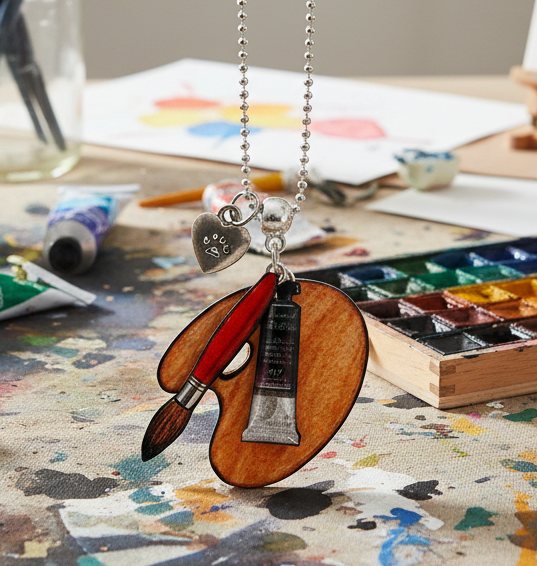 Portez votre amour pour l’art avec ce pendentif artisanal et poétique, pensé pour toutes les âmes créatives.