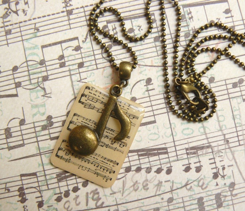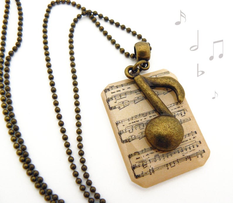 🌟Pendentif note de musique et partition – bijou bronze pour musiciennes