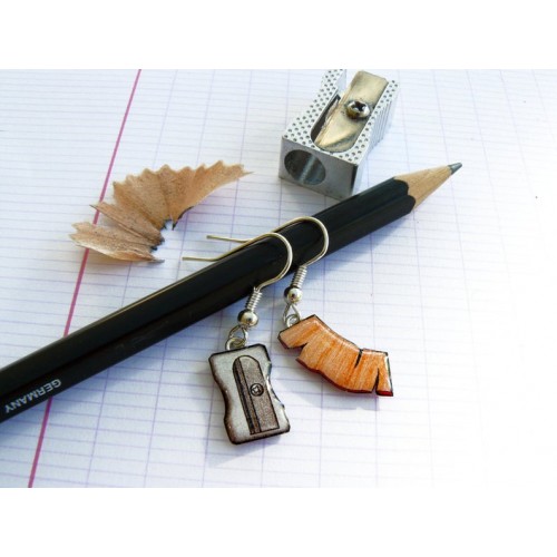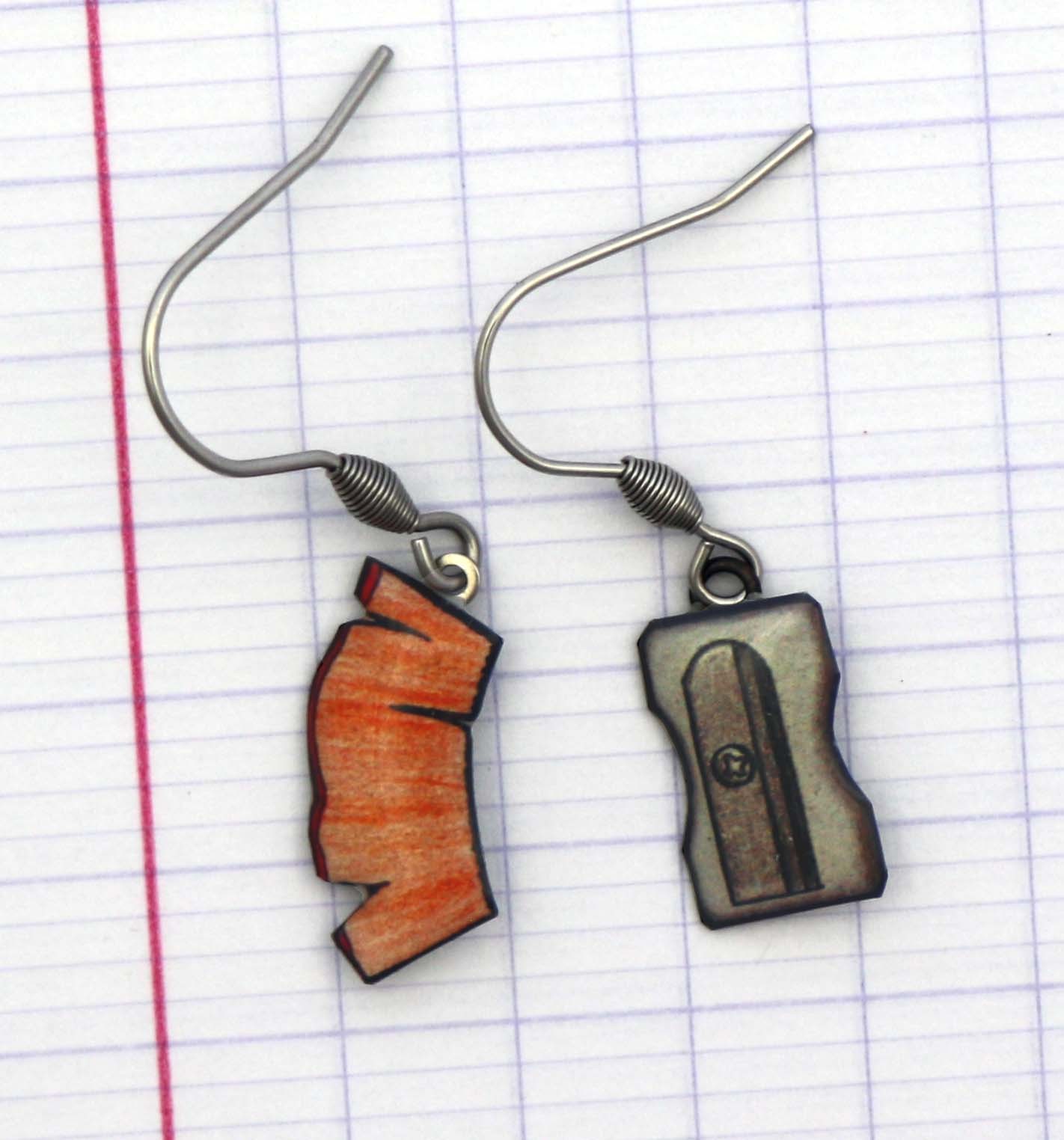 Ces boucles d’oreilles fantaisie taille-crayon et pelure de crayon sont une ode à la créativité et à l’univers scolaire, revisité avec humour et délicatesse.