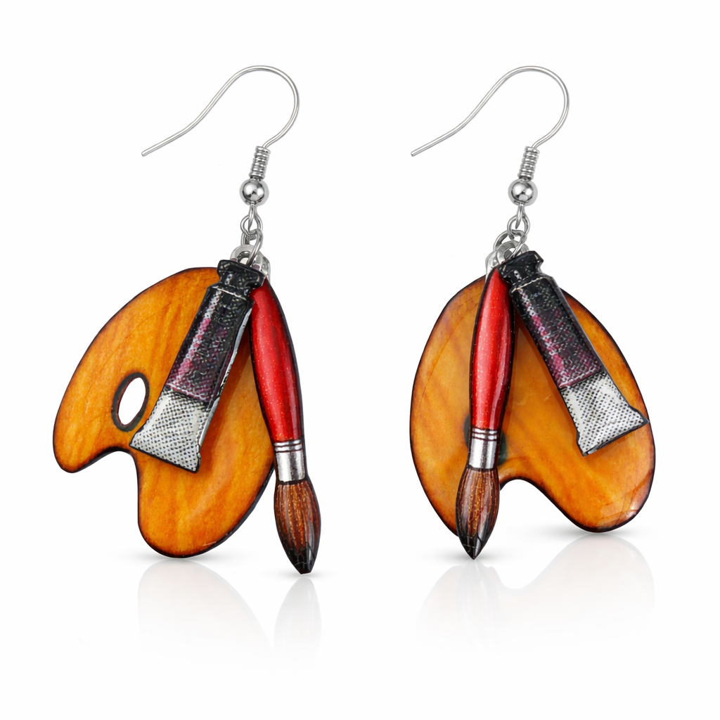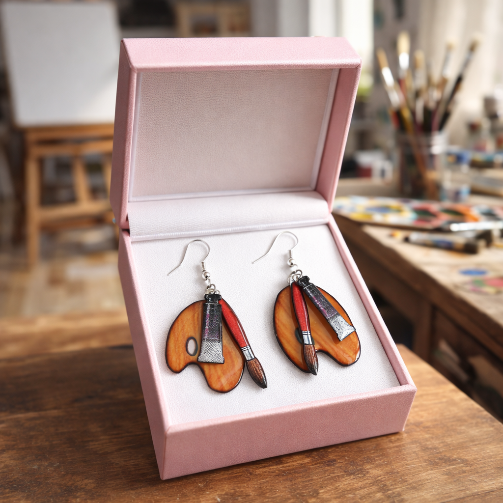⭐Boucles d’oreilles palette de peinture en résine et métal argenté – Bijou original pour artiste peintre