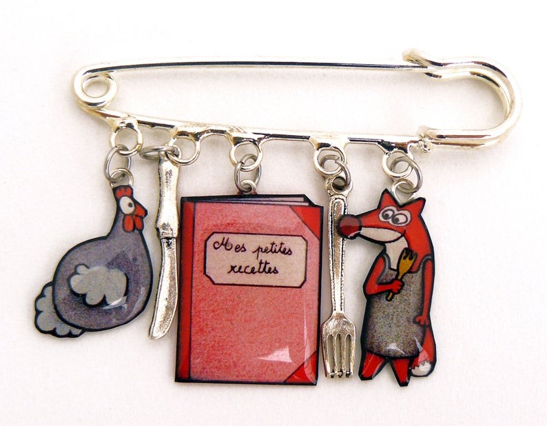 🐔Broche renard, poule et livre de recette en résine – Bijou humoristique, original et plein de malice