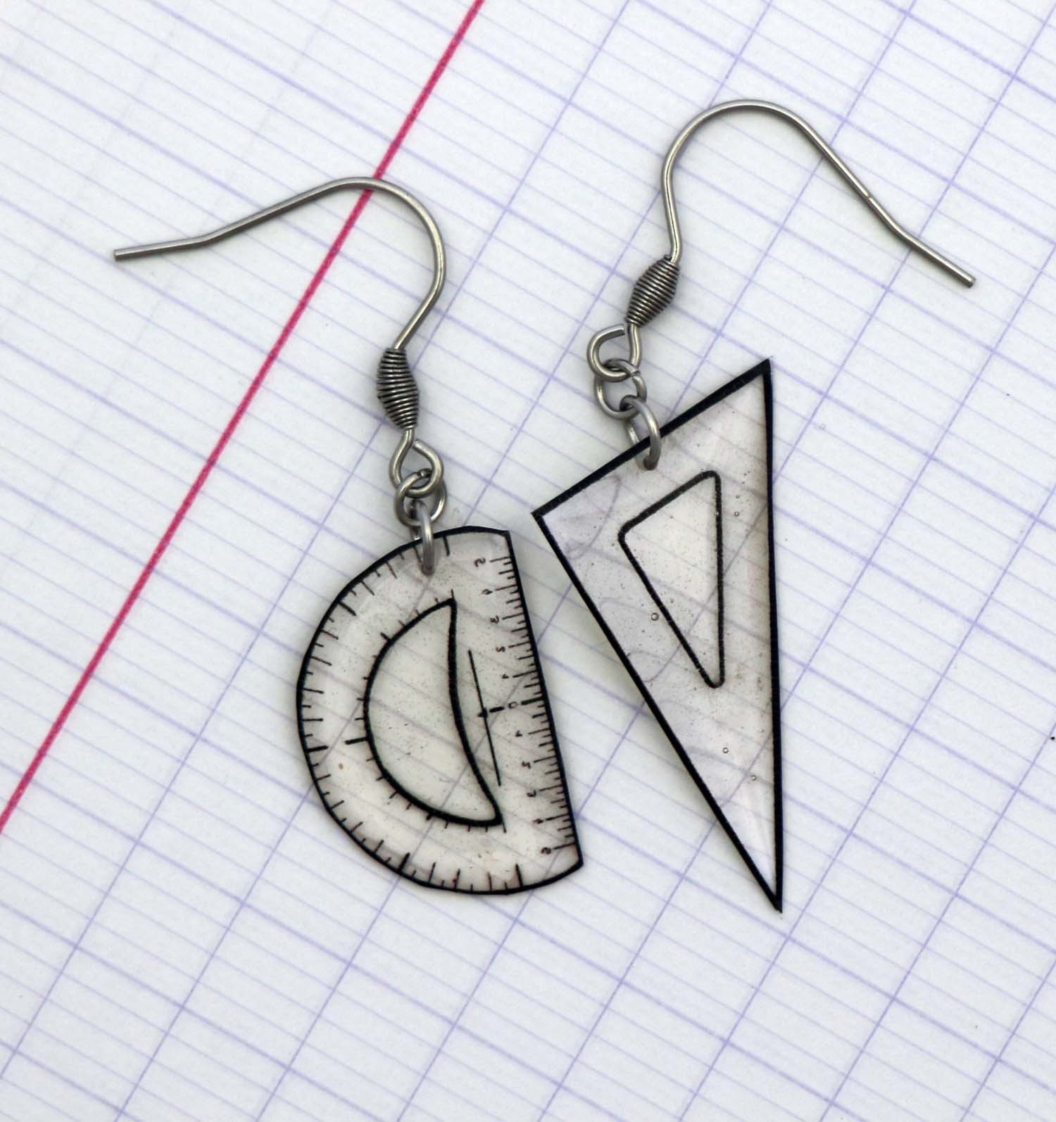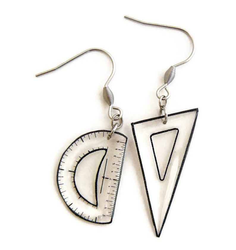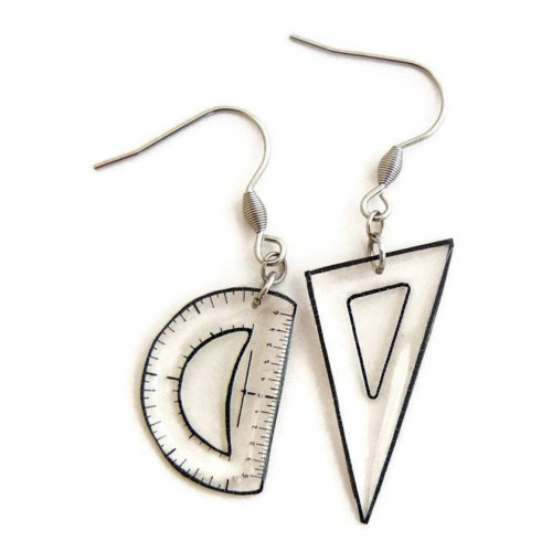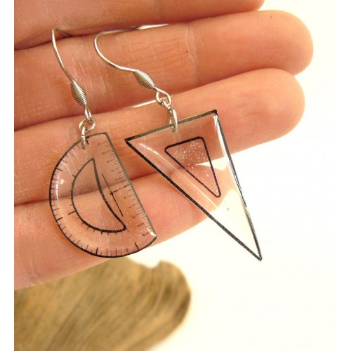 Apportez une touche d’humour et d’originalité à votre look avec ces boucles d’oreilles équerre et rapporteur en résine !