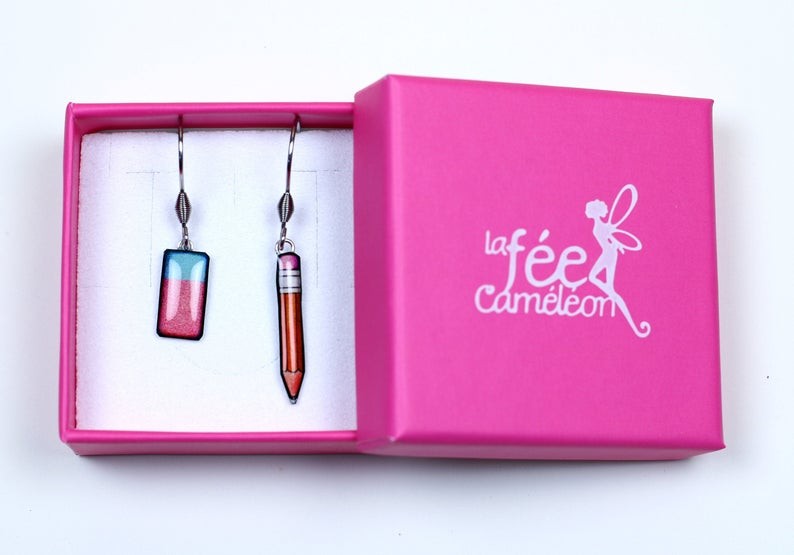 Légères et confortables, ces boucles d’oreilles pleines d’humour sont parfaites pour les enseignants, les artistes, les amoureux de la papeterie ou toute personne qui aime les accessoires décalés et raffinés.