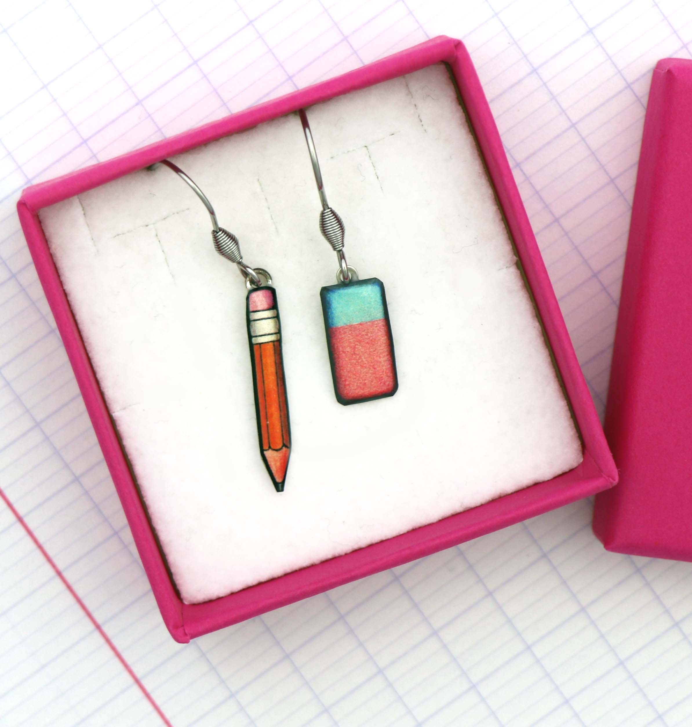 Ajoutez une touche de fantaisie à vos journées avec ces boucles d’oreilles originales “Gomme & Crayon” !