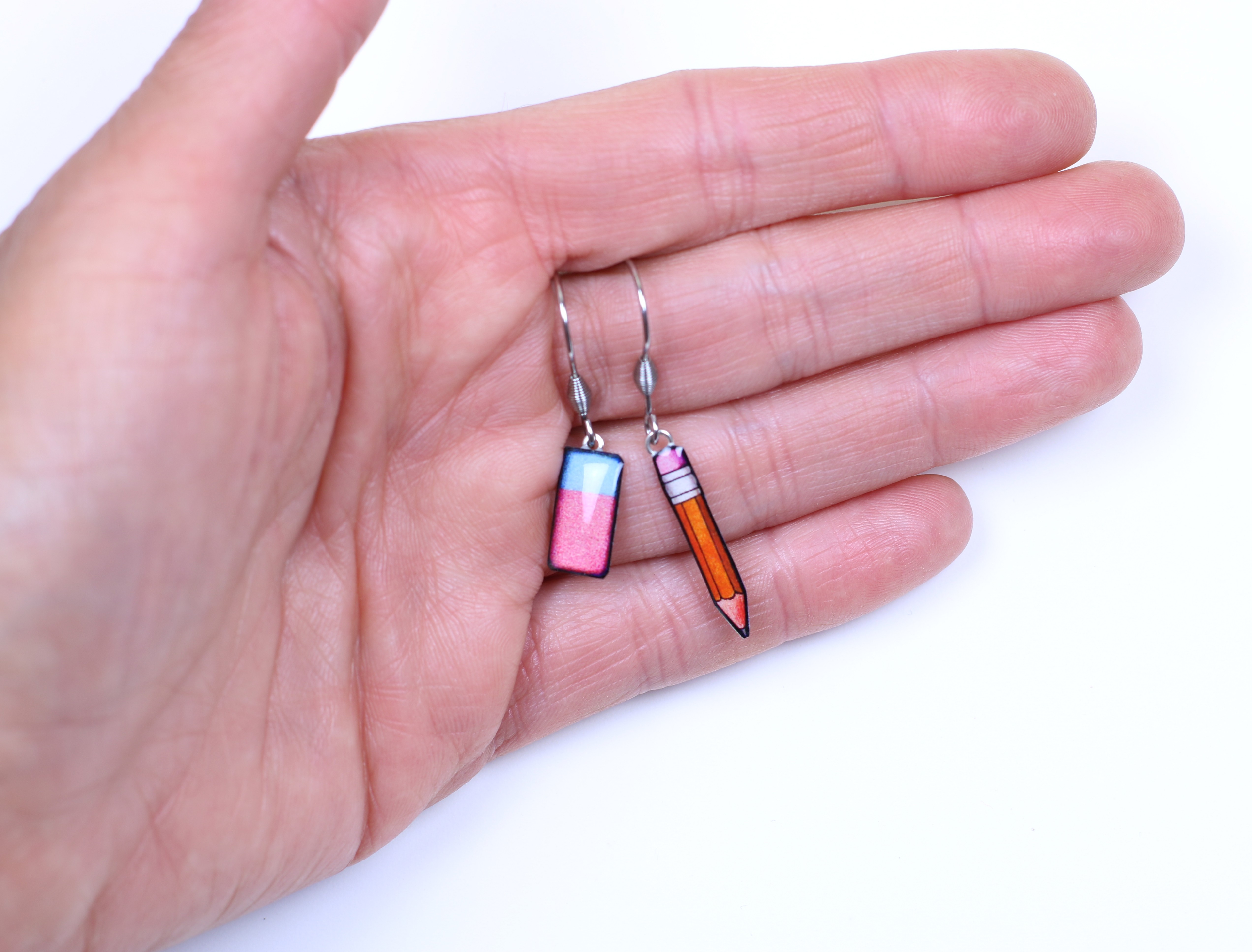 ✏️ Boucles d’oreilles Gomme & Crayon – Bijoux artisanaux en résine