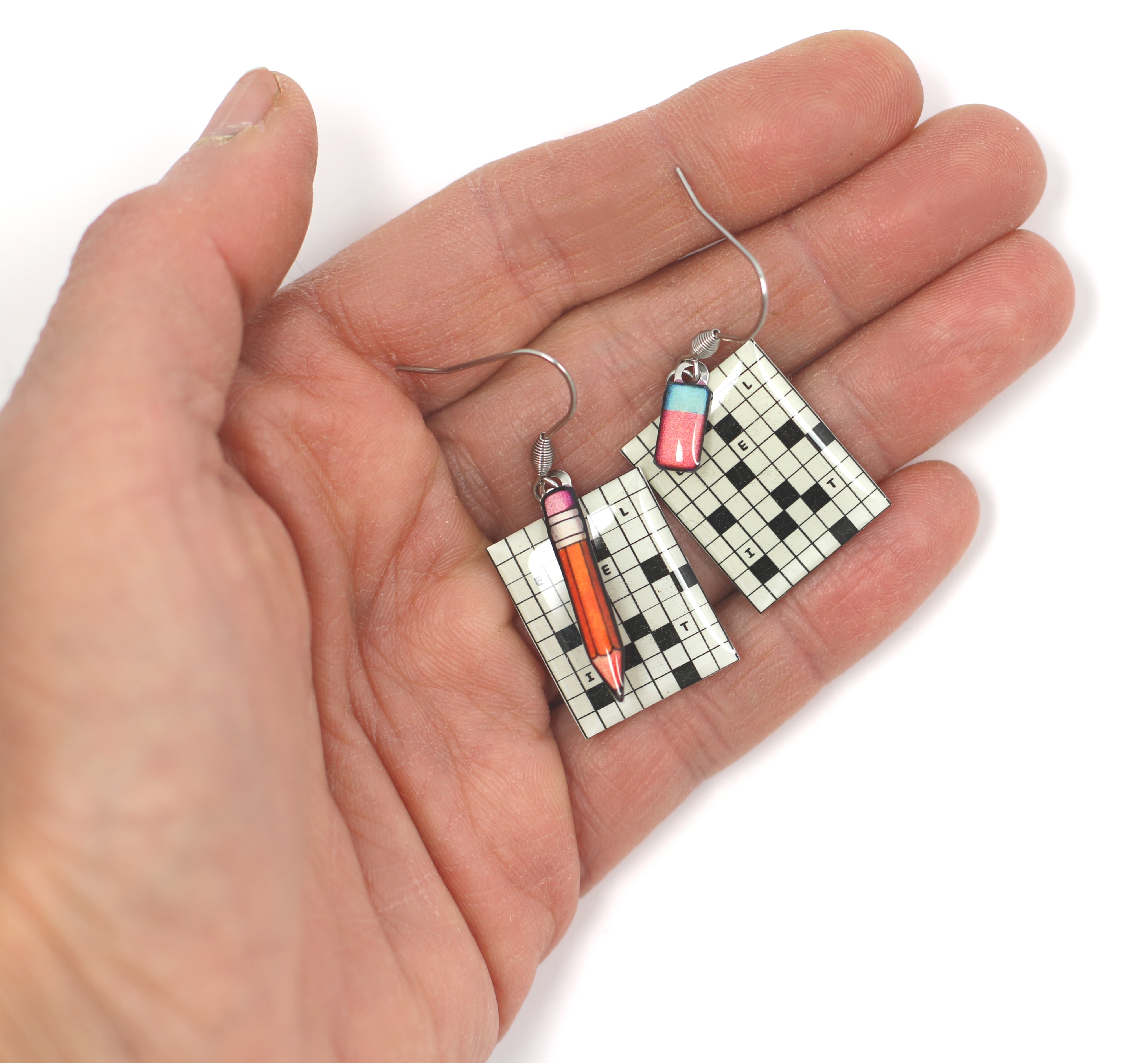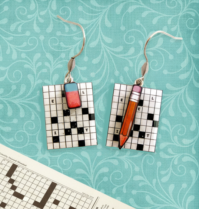 🎨 Boucles d’oreilles humoristiques “Mots croisés, gomme et crayon”