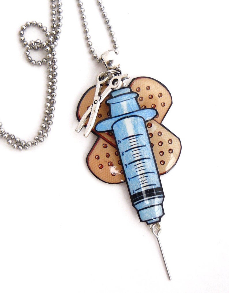 💉 Pendentif “Infirmière” – Seringue, Pansement & Ciseaux
