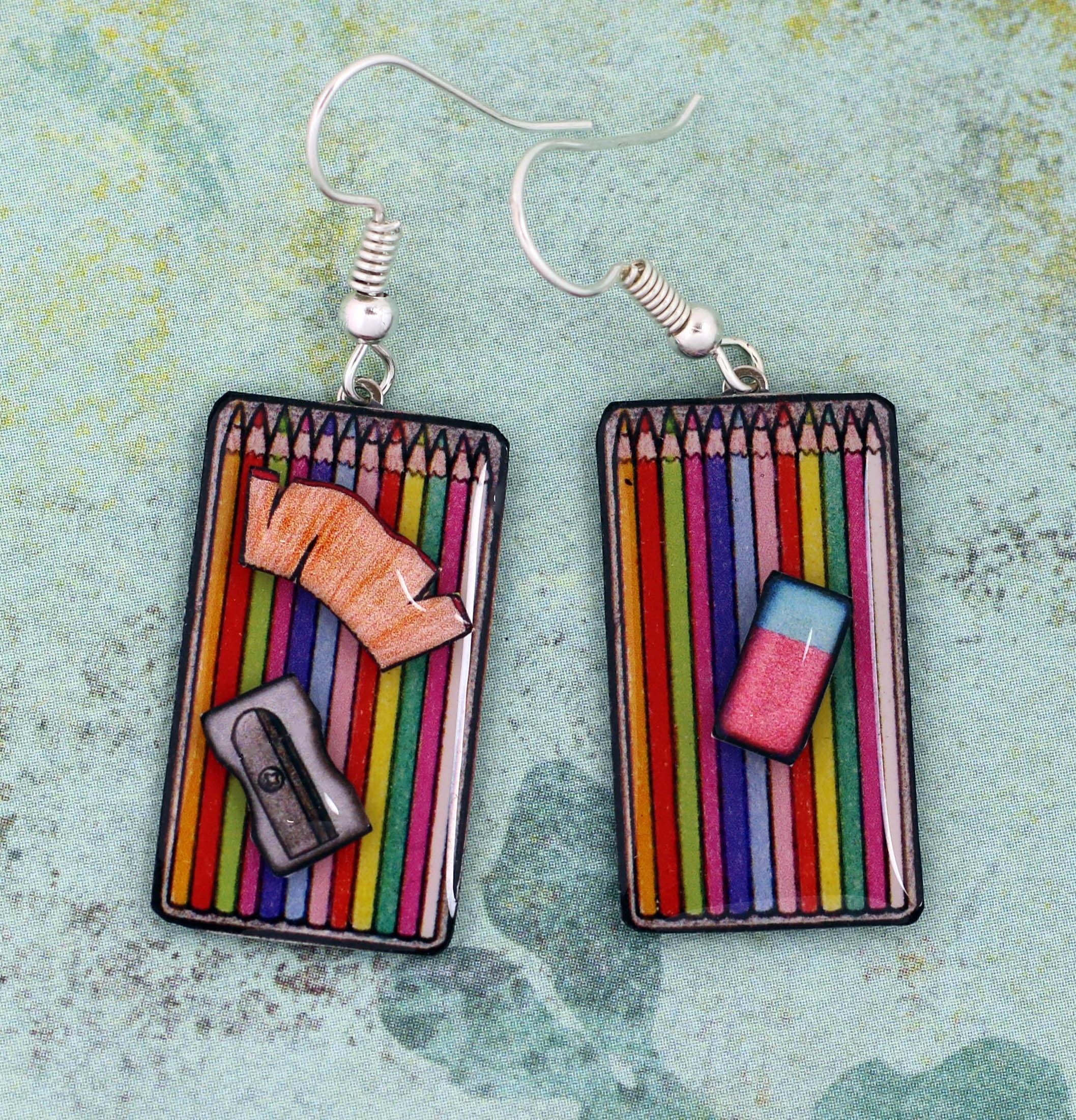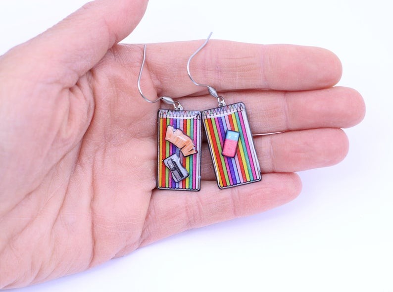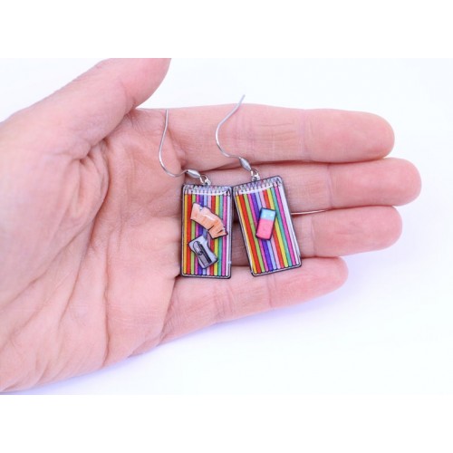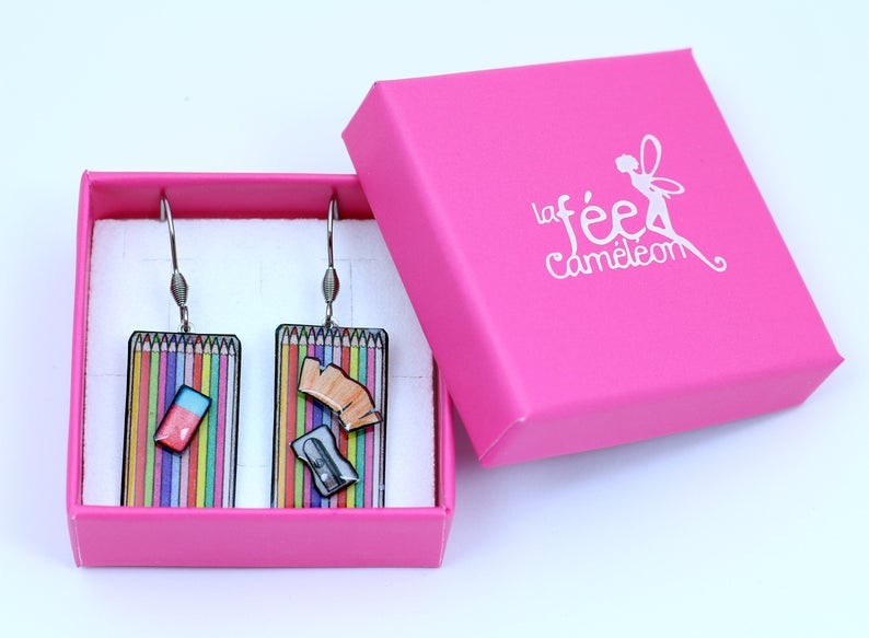 ✏️ Boucles d’oreilles “Boîte de crayons & accessoires d’école” – Le bijou parfait pour les esprits créatifs !