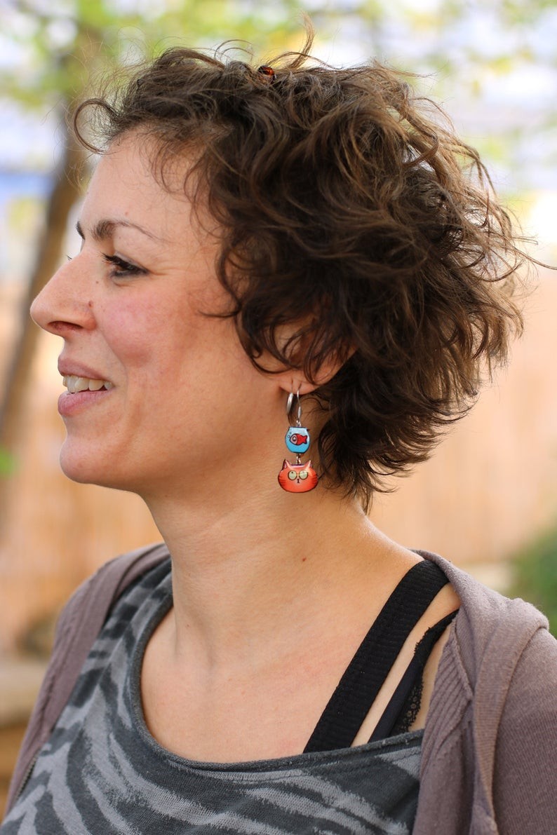 🐱🐟 Boucles d’oreilles dépareillées “Chat & Poisson rouge” – Résine