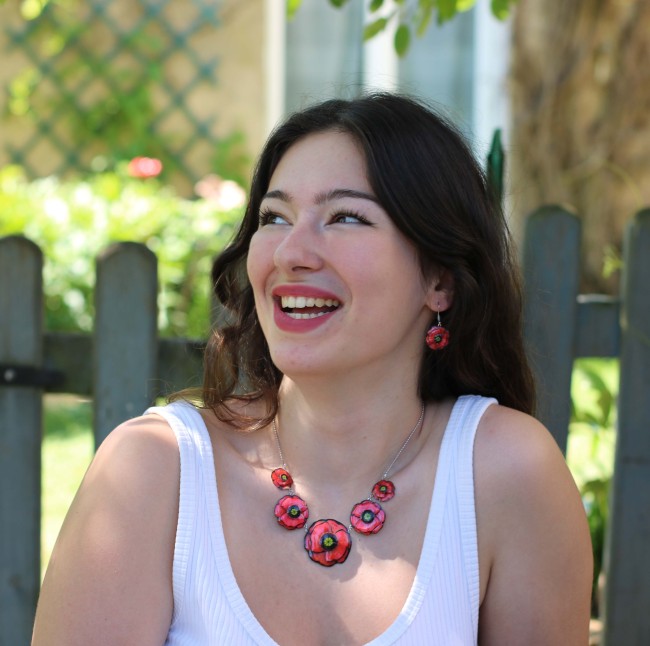 🌺 Collier “Cinq Coquelicots” – Résine & Acier inoxydable