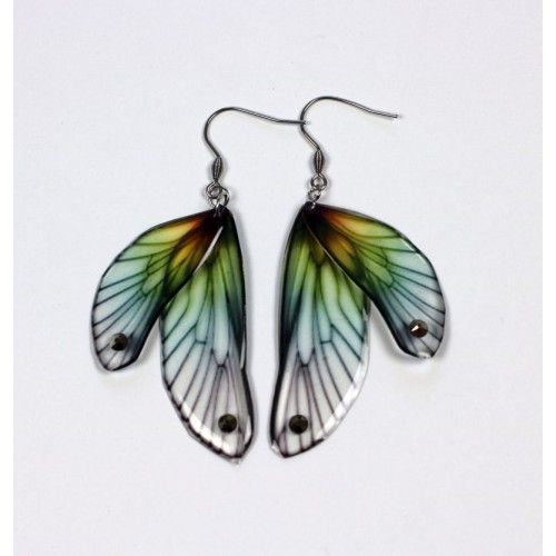 Chaque papillon est orné d’un strass bleu étincelant, qui capte la lumière à chaque mouvement. Le dos en résine grise offre une finition élégante et discrète.