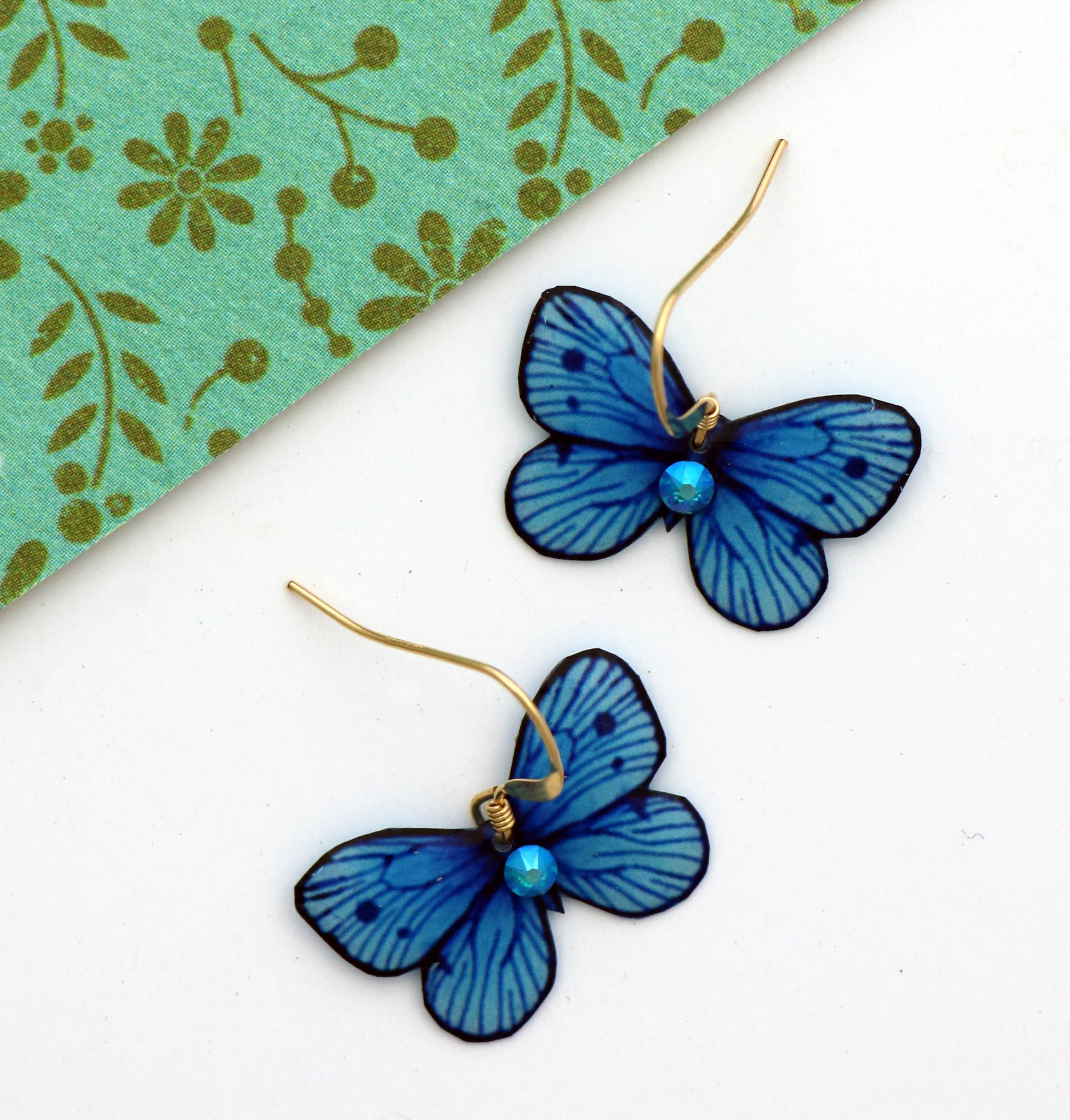 🦋 Apportez une touche de délicatesse et de lumière à votre style avec ces boucles d’oreilles en forme de papillons bleus en résine.