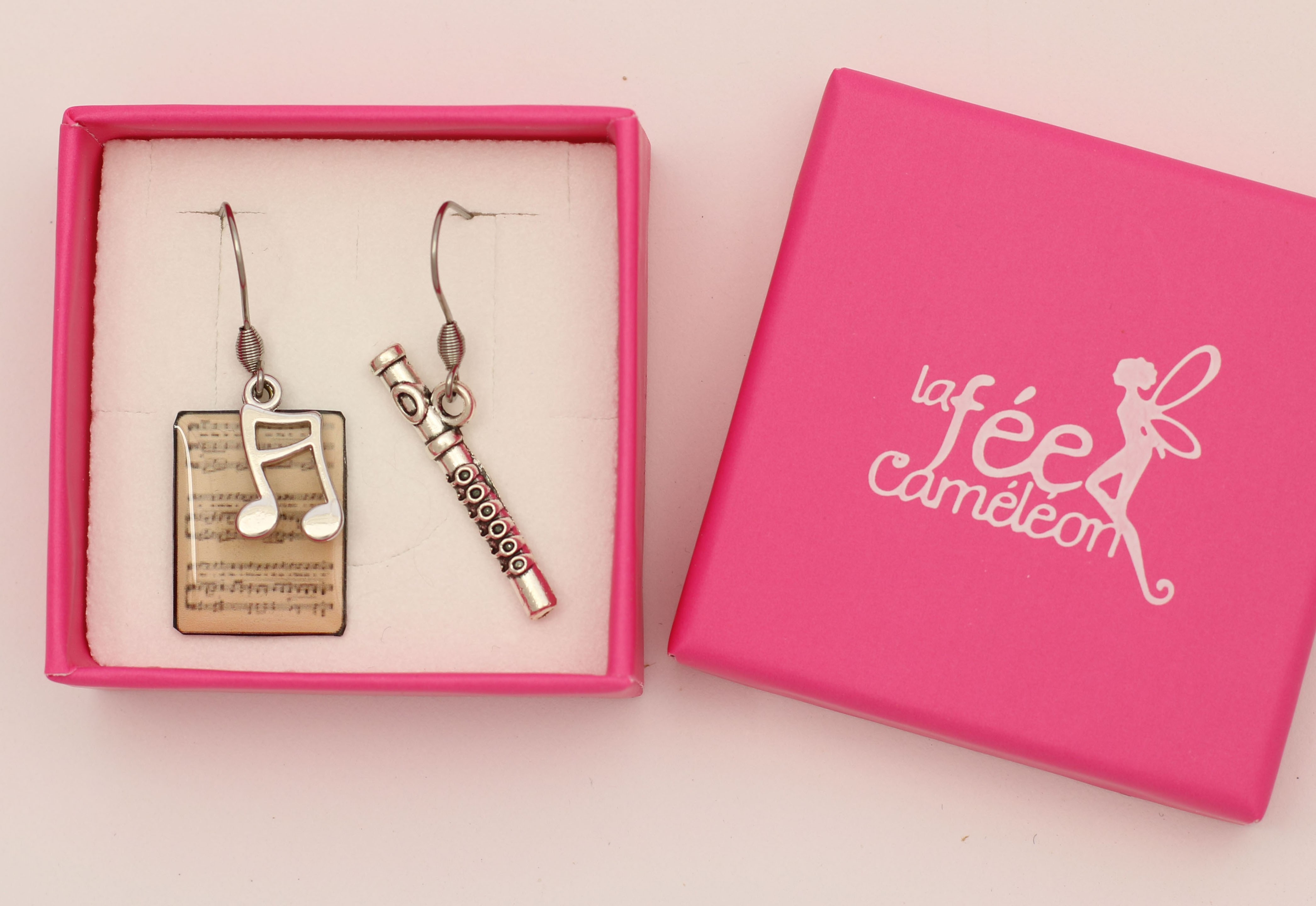 Chaque paire est soigneusement présentée dans un écrin élégant, accompagnée de deux poussoirs, prête à être offerte à une musicienne, professeure de musique ou à toute âme créative en quête d’un bijou symbolique et poétique.