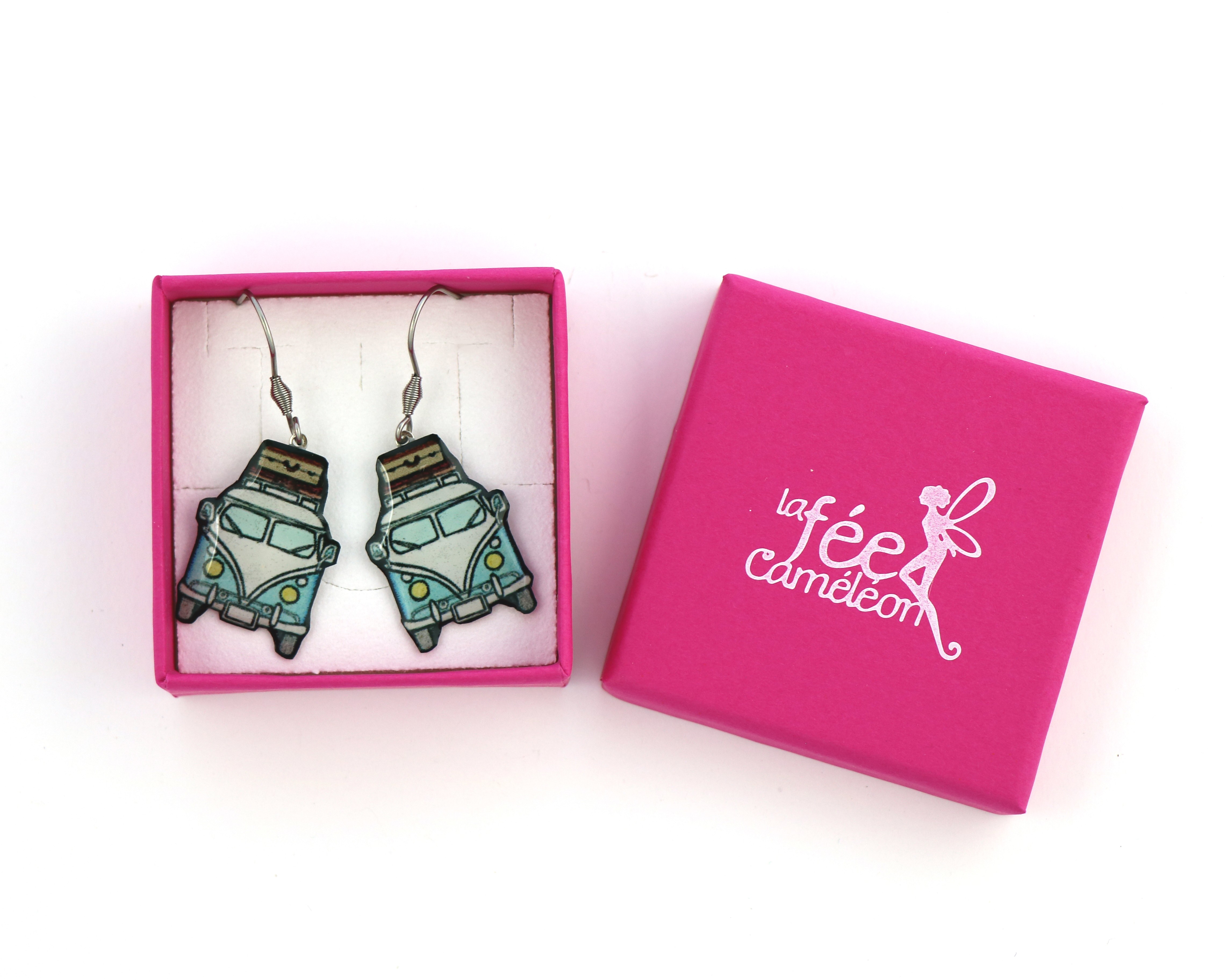 Boucles d’oreilles fantaisie en résine – Thème voyage et van rétro