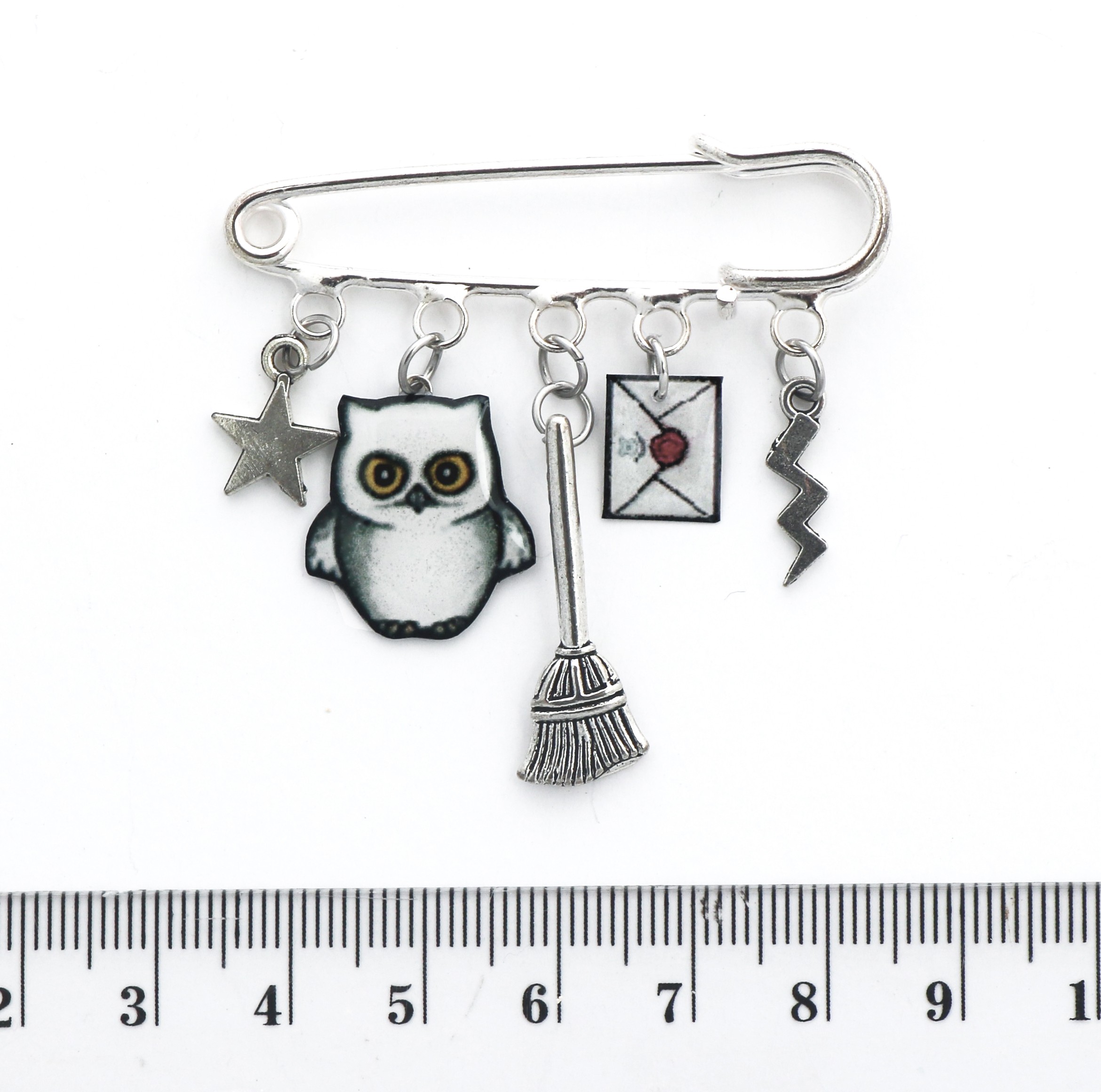 Cette broche épingle multi-charms est une création entièrement illustrée et assemblée à la main par La Fée Caméléon.