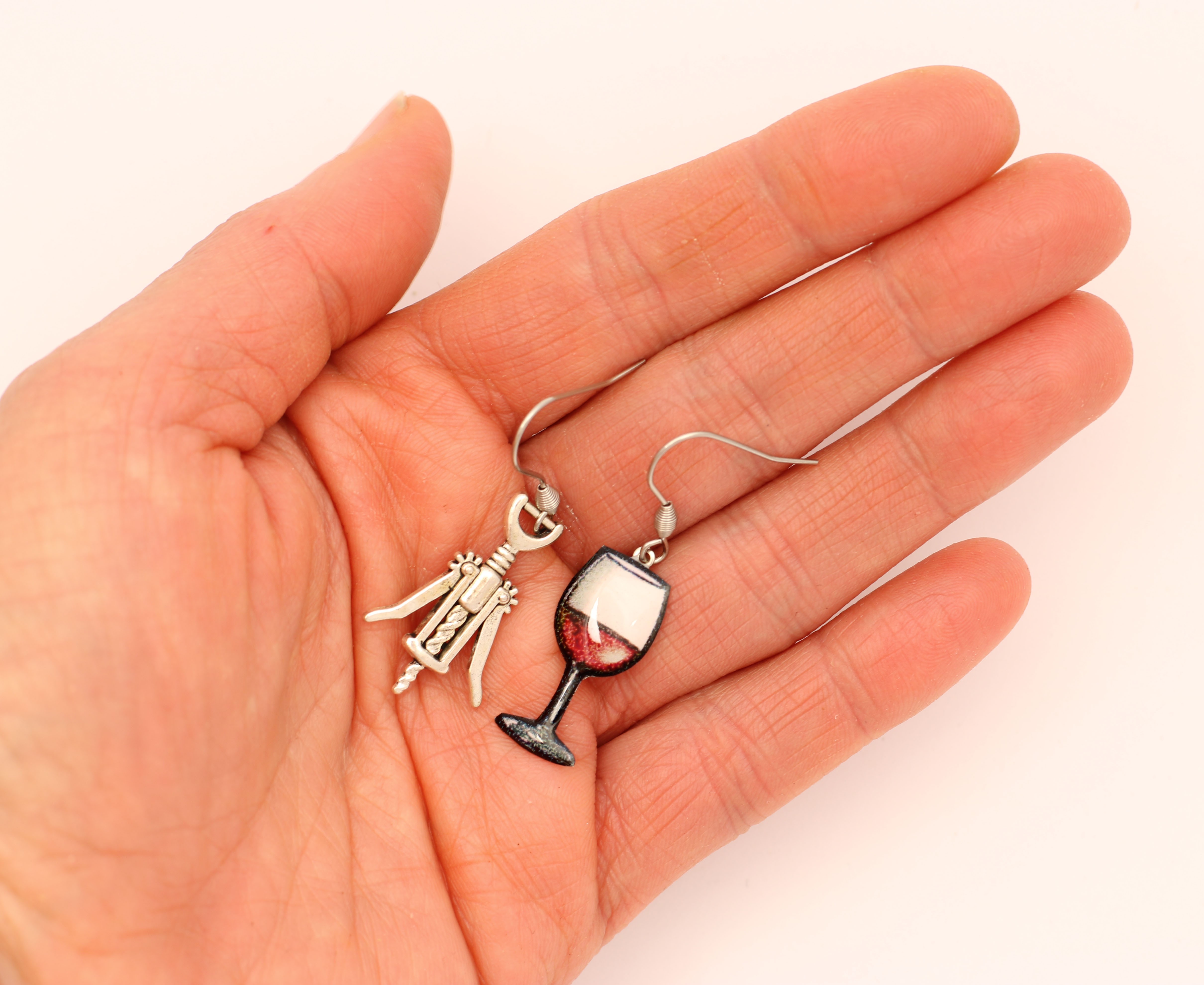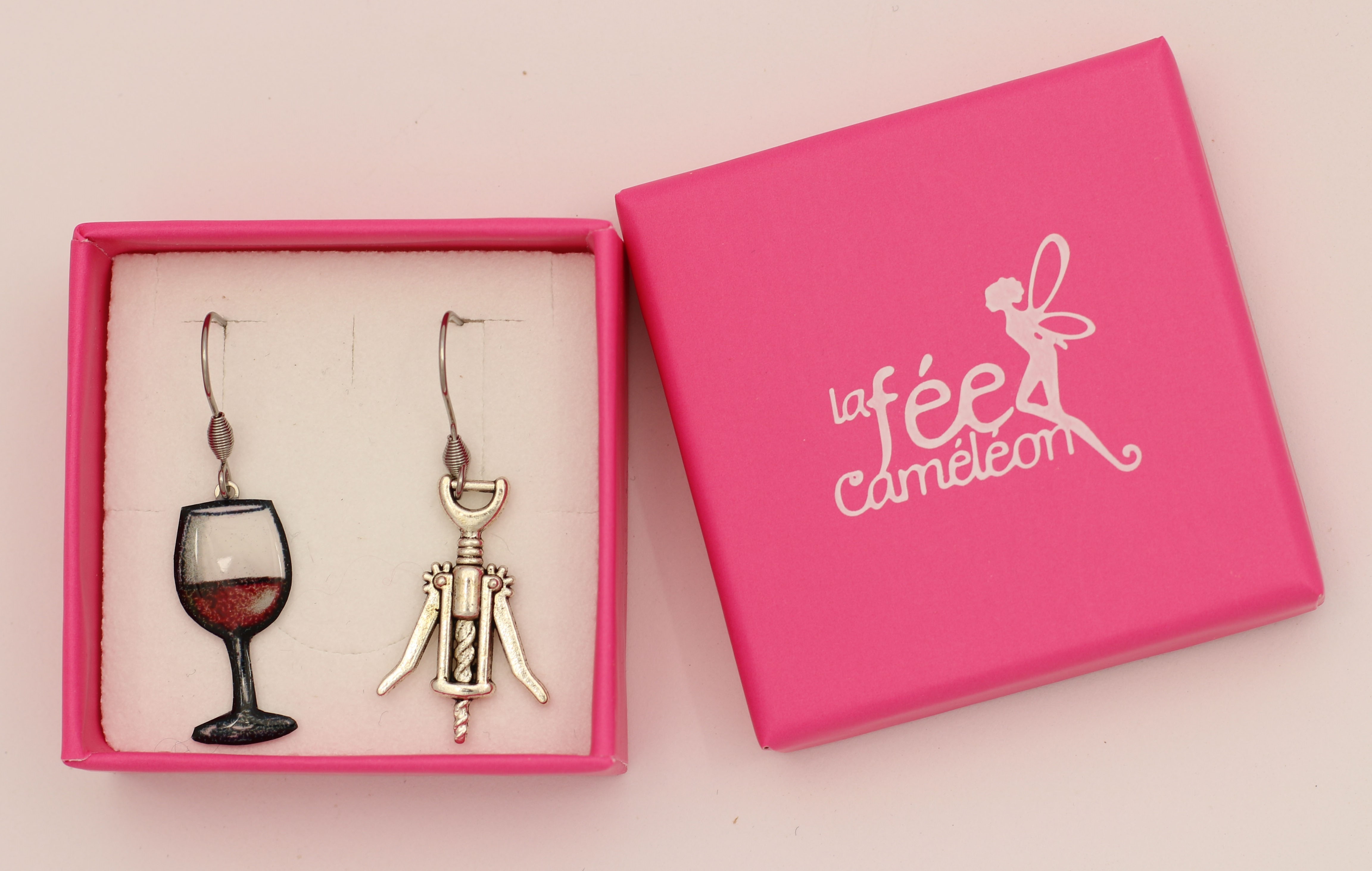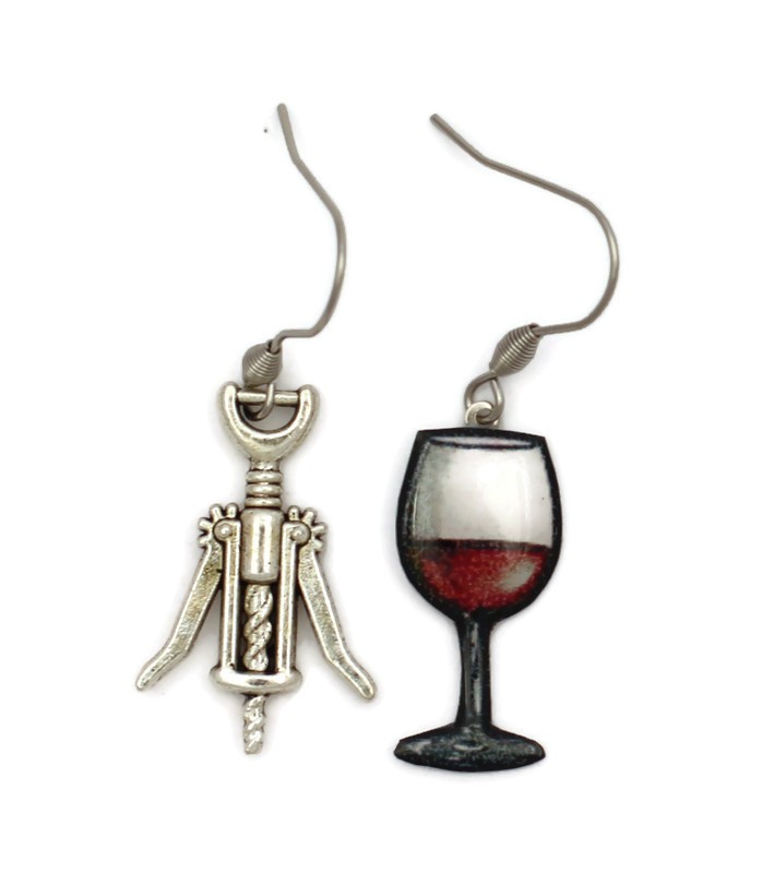 Boucles d’oreilles dépareillées Verre de Vin & Tire-bouchon – Bijou humoristique original
