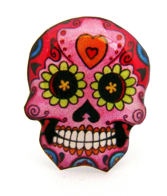 Boucles d'oreilles skull rose, têtes de mort mexicaines