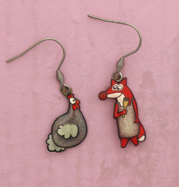 Boucles d’oreilles dépareillées "Renard et Poule" – Bijou humoristique et original en résine