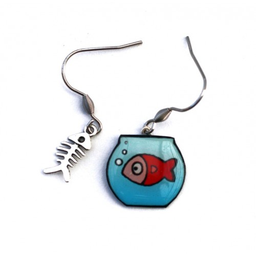 Boucles d'oreilles petit poisson rouge et arête de poisson
