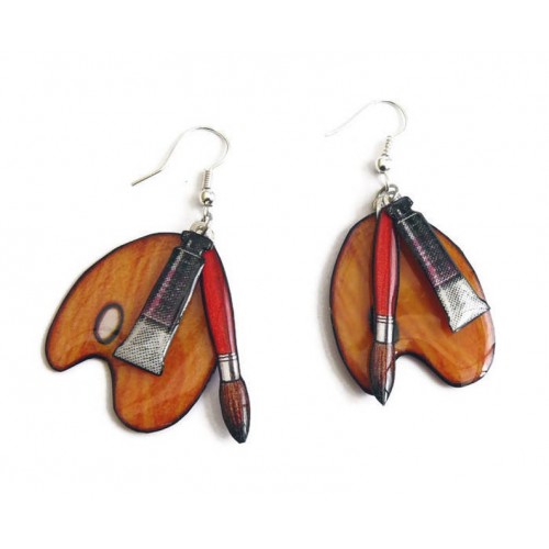 Boucles d'oreilles dépareillées tube de peinture rose et pinceau