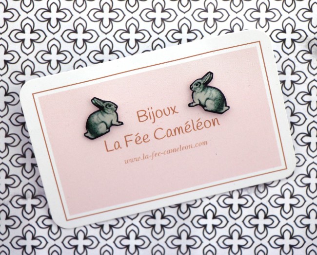 Boucles d’Oreilles Puces Lapin Blanc – Bijoux Alice au Pays des Merveilles Fantaisie