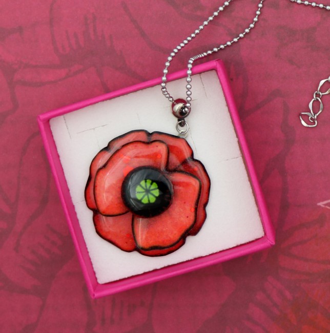 Pendentif Coquelicot – Bijou Fantaisie Floral en Résine et Acier Inoxydable