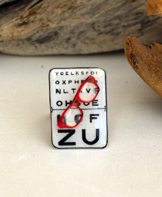 Pin's test de lecture et lunettes rouges, table de monoyer, échelle optométrique, examen ophtalmologique