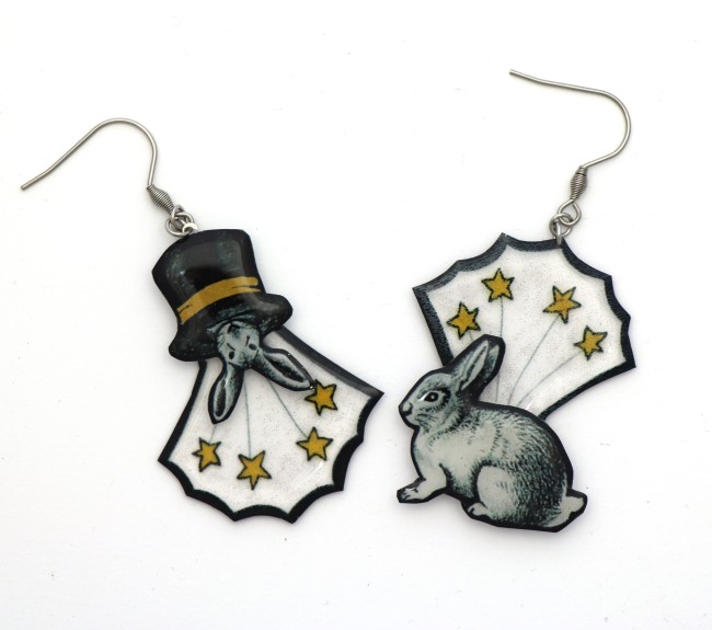 Grandes Boucles d’Oreilles "Magie" Lapin et Chapeau – Étoiles Scintillantes | Bijoux Fantaisie Féériques