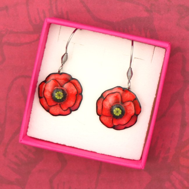 Boucles d’oreilles dépareillées "Petit Chaperon Rouge & Loup" – Bijou Poétique en Résine